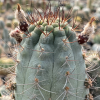 Fish hooked cactii, solitary club shaped deep green body. Long hooked spines, very soft thick white roots. Greenish brown flowers in Feburary.