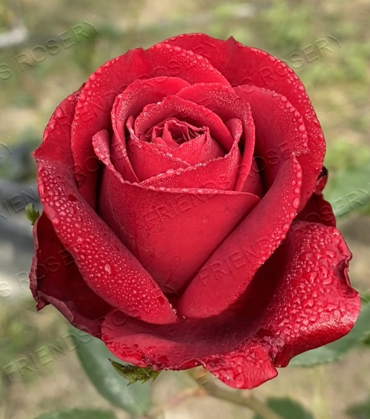 Classical shape, spiral opening of deep red blooms on a tall upright bush.