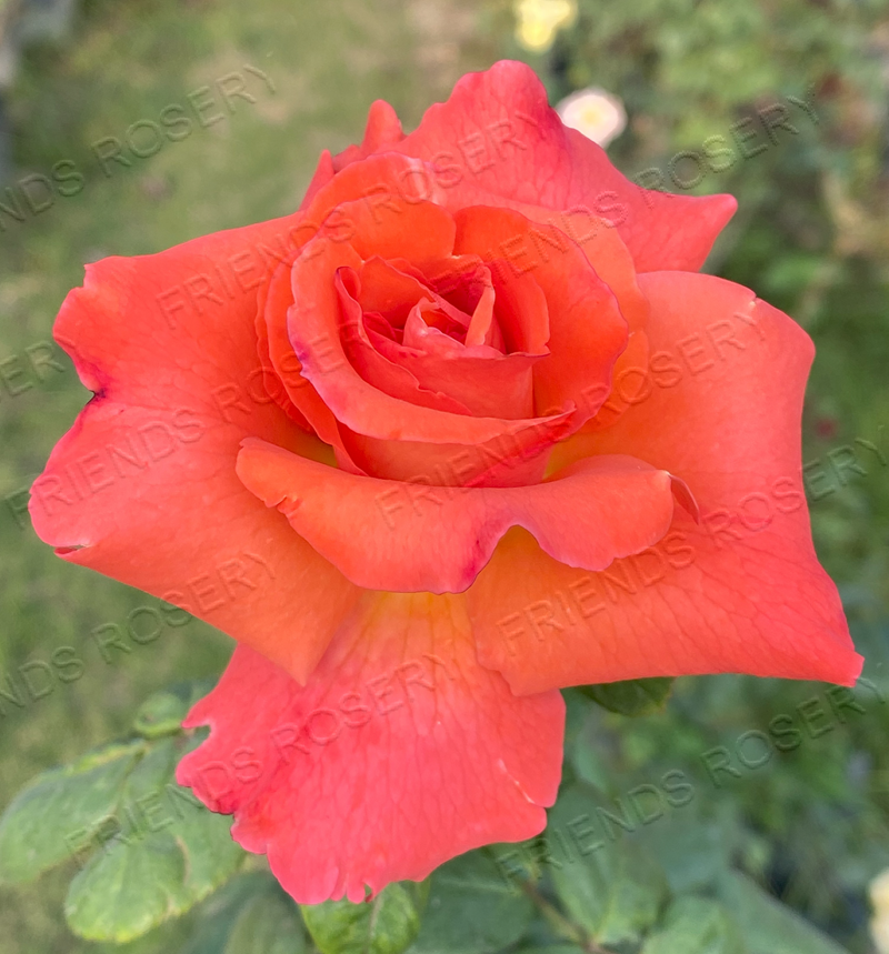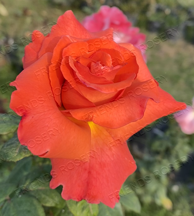 Dazzling orange with copper undertones, this large sized blooms on a compact medium sized bush which is loaded with dark green foliage & has mild fragrance.