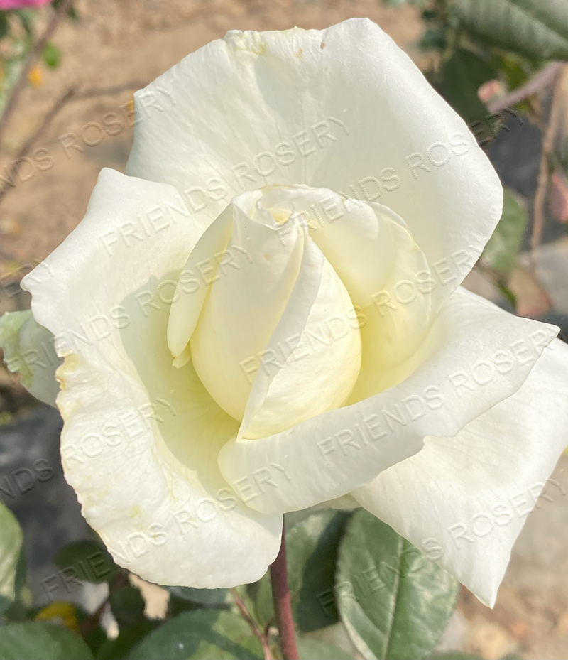 Large sized pure white with a slight tinge of pink blooms on a tall bushy vigorous plant having glossy medium green foliage. Borne mostly solitary or in small clusters.