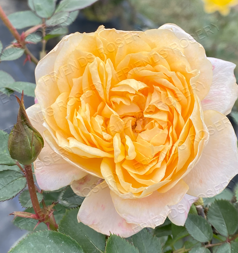 Full old fashioned yellowish to soft apricot blooms of about 3? size and produced in small clusters on a compact and bushy plant having strong fragrance of freshly cut apple. Excellent for pots. Small glossy green leaves and very floriferous.