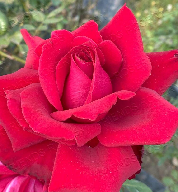 Dazzling deep red blooms of almost 5 inch are solitary produced on an upright tall bush having good dark green foliage.
