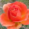 Burnt russet orange to striped in well spaced trusses on a medium sized bush. The blooms are around 3.5″ to 4″ in clusters. Good fast growing variety.
