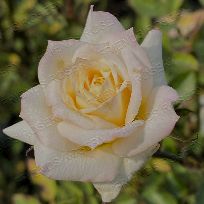 High centered, HT type blooms of deep yellow paling to edges on a compact upright bush.