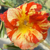 Semi double blooms of chocolate colour with golden reverse and yellow eye are produced on long arching canes. The plant is spreading types.
