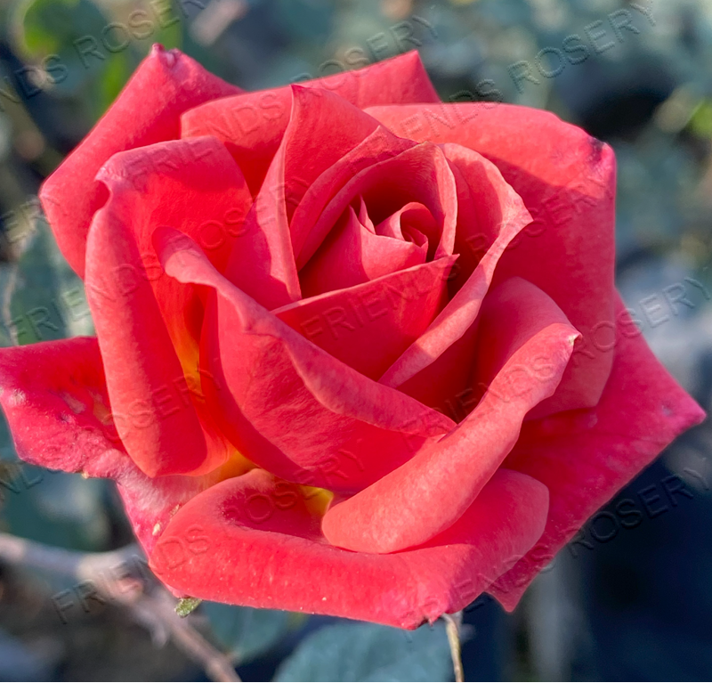 Orange red with a hint of russet. Has a unique and unusual colour. The plant is a vigorous grower and well formed flowers are plentiful with fast repeating. Award of Excellence and disease resistant.