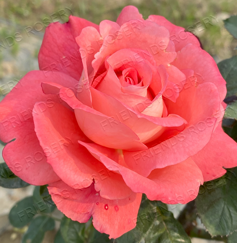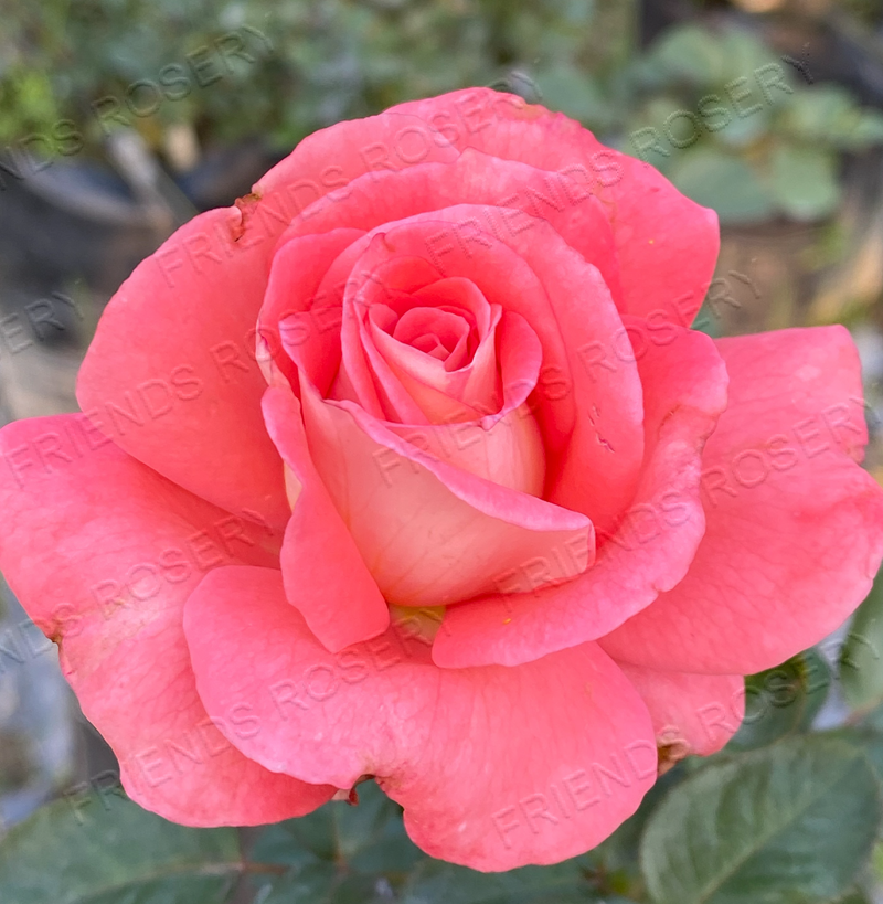 Classic high centered form having ruffled petals of coral pink with a lighter reverse on a bushy green foliage. Plant is upright and large blooms are produced in small clusters.